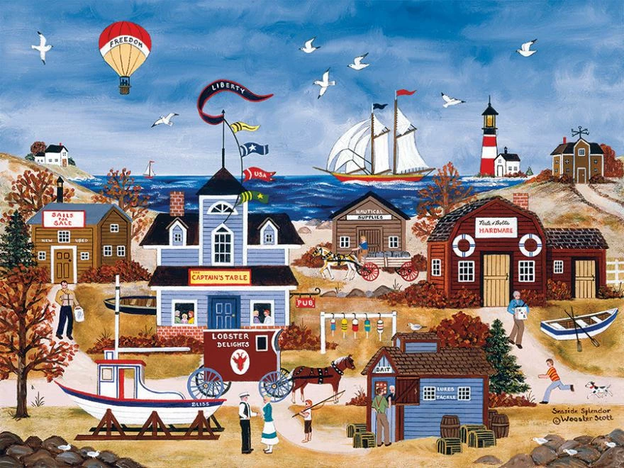 Wooster Scott captures the essence of Americana in this image as ships sail off the coast and seagulls soar above.ย