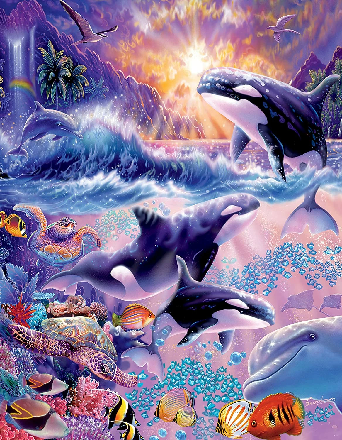 8 in 1, 300pc, 500pc, 750pc & 1000pc Multipack Β Finished puzzles measure 11″x15″, 14″x18″, 24″x18″, & 24″x18″