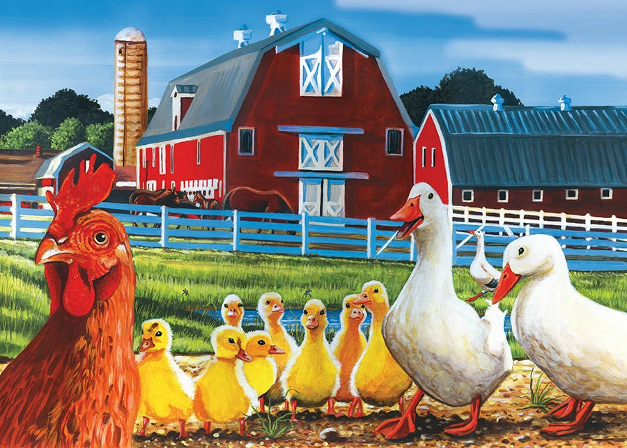 Dwight’s Ducks are loose and headed away from their big red barn! Where could the ducks and rooster be heading? Perhaps they are coming to a home near you!