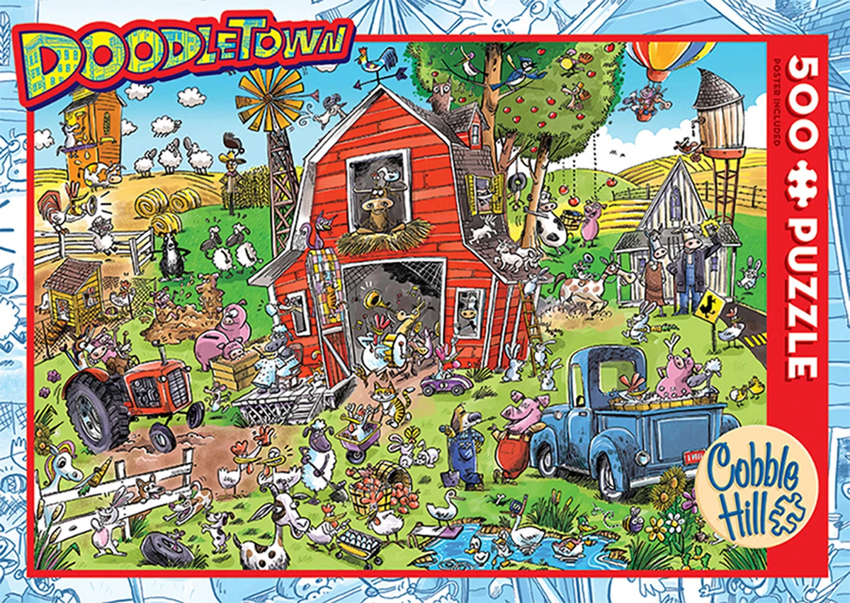 500 The Farmyard Folly is open for business. Tractor rides, truck baths, apple tree picking and all things fun with the farm animals in 1000 chaotic pieces!