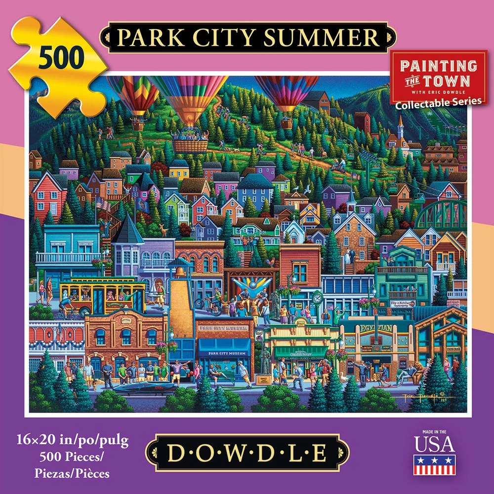 In the 500 piece jigsaw puzzle, Park City Summer by Dowdle Folk Art, an illustration of a mountain side city in the middle of summer is depicted. The artist, Eric Dowdle, made this illustration colorful and detailed, as well as entertaining. This puzzle has dimensions of 20″ x 16″ which makes this a fun and challenging activity to do with the entire familyβespecially if you enjoy city illustrations.