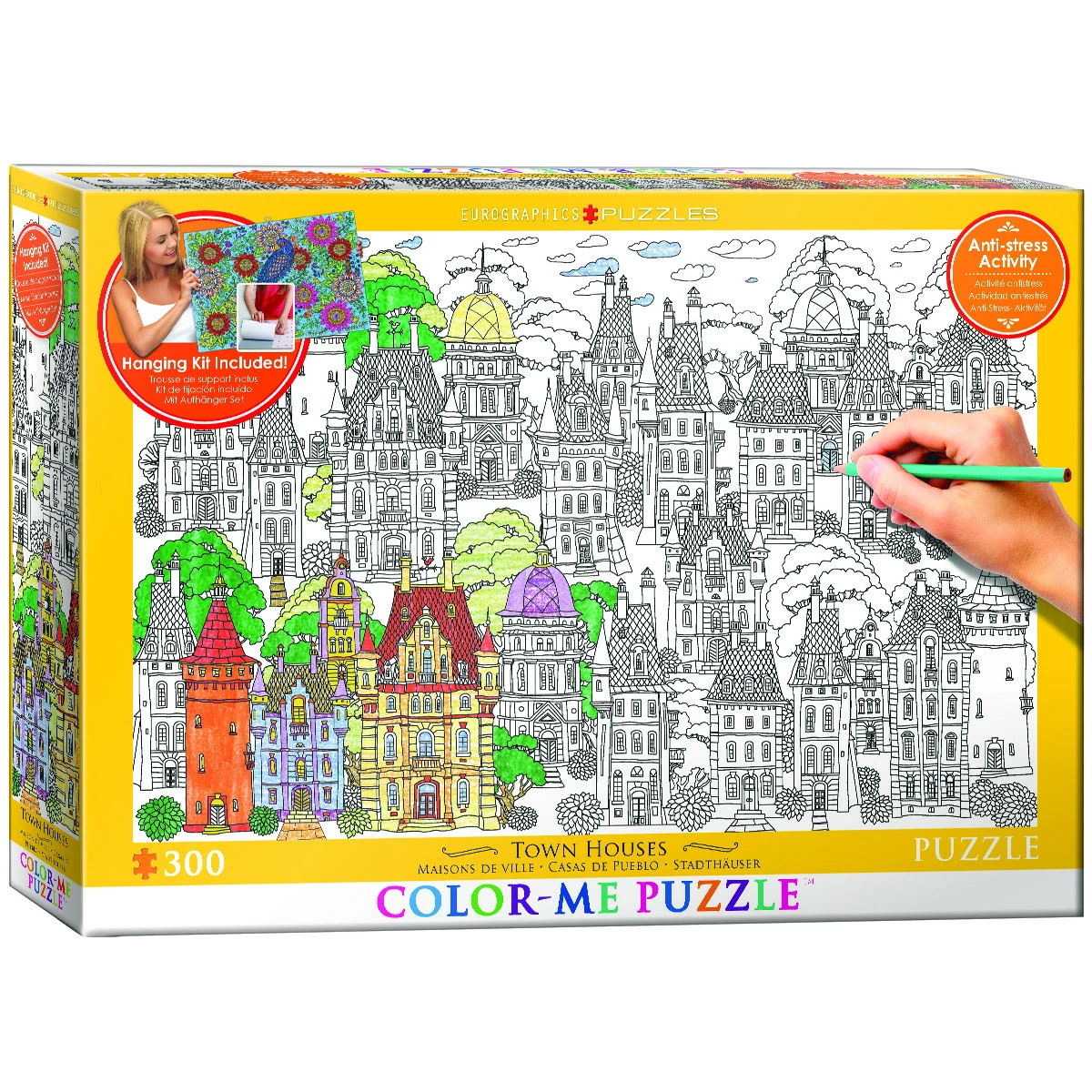 EuroGraphics Town Houses 300-Piece Color-Me Puzzle. Assemble the puzzle and color it. Hanging Kit Included!