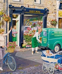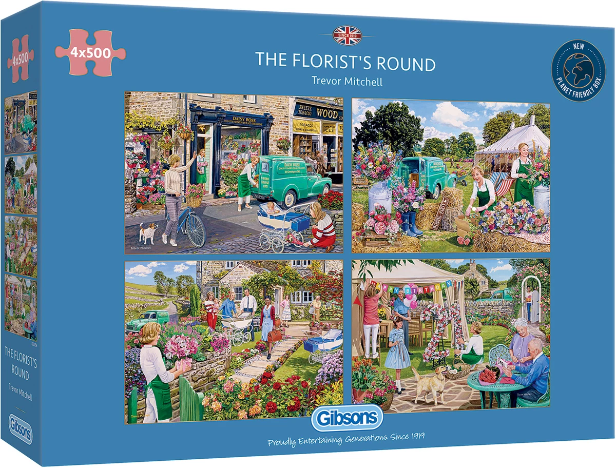 With four 500 piece puzzles in one box, you’ll be taken on a journey with Daisy Rose, the village Florist. First, she must load up her van ready for the day ahead, before making deliveries to her local customers. She ends the day by setting up a gorgeous floral centre piece for Zadie’s 21st birthday party! This beautiful set of 4×500 piece puzzles has been lovingly painted by Trevor Mitchell. This particular painting was inspired by his visit to Grassington in North Yorkshire in October 2019.