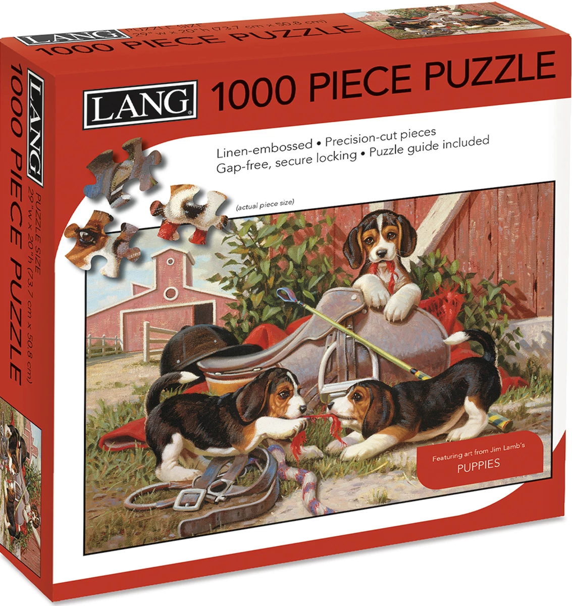 LANG puzzles are a fun and challenging activity to do with friends and family! Tackle the Saddling Up 1,000-Piece Puzzle, featuring artwork by Jim Lamb. Each puzzle piece is finished with linen-embossed paper so the completed piece looks like one large canvas! If you get stumped, an art guide print is included to help you out.