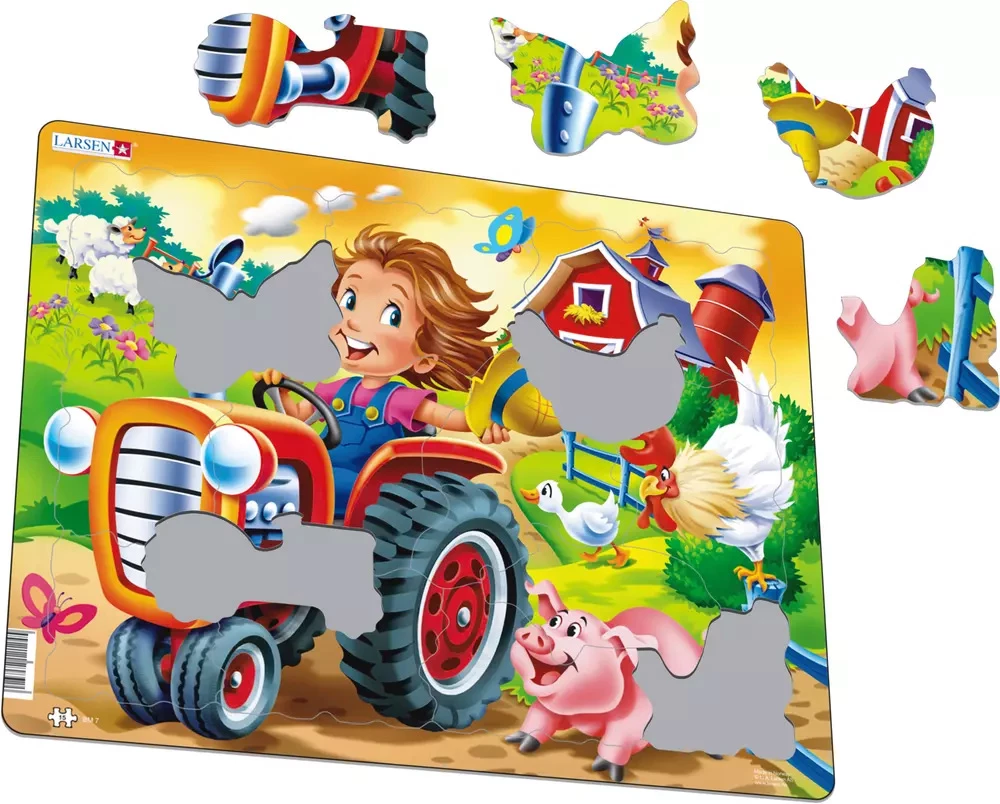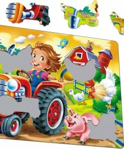 Flash Sale ⭐ Larsen Puzzles 15 Pieces On The Farm: Tractor Racing A Pig 🛒