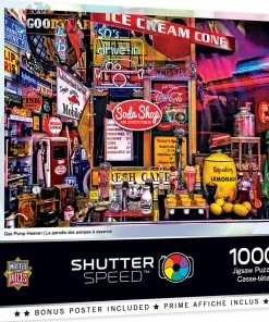 This MasterPieces 19.25″ x 26.75″ 1000pc Shutter Speed Puzzle features Gas Pump Heaven Museum and ice Cream Parlour. To reduce its impact on our environment, the chipboard used in this puzzle is made of recycled material. Linda Berman is an award-winning photographer with special skills in Photoshop post-production. Her background in fine art elevates her work and transcends conventional photography. Her work has been exhibited and collected worldwide. 1000 Piece Puzzle Finished 19.25 inch x 26.75 inch Thick recycled puzzle board and random cut pieces ensure a tight interlocking fit and create a fun experience MasterPieces – An American Puzzle & Game Company. We stand behind our products and guarantee your satisfaction.