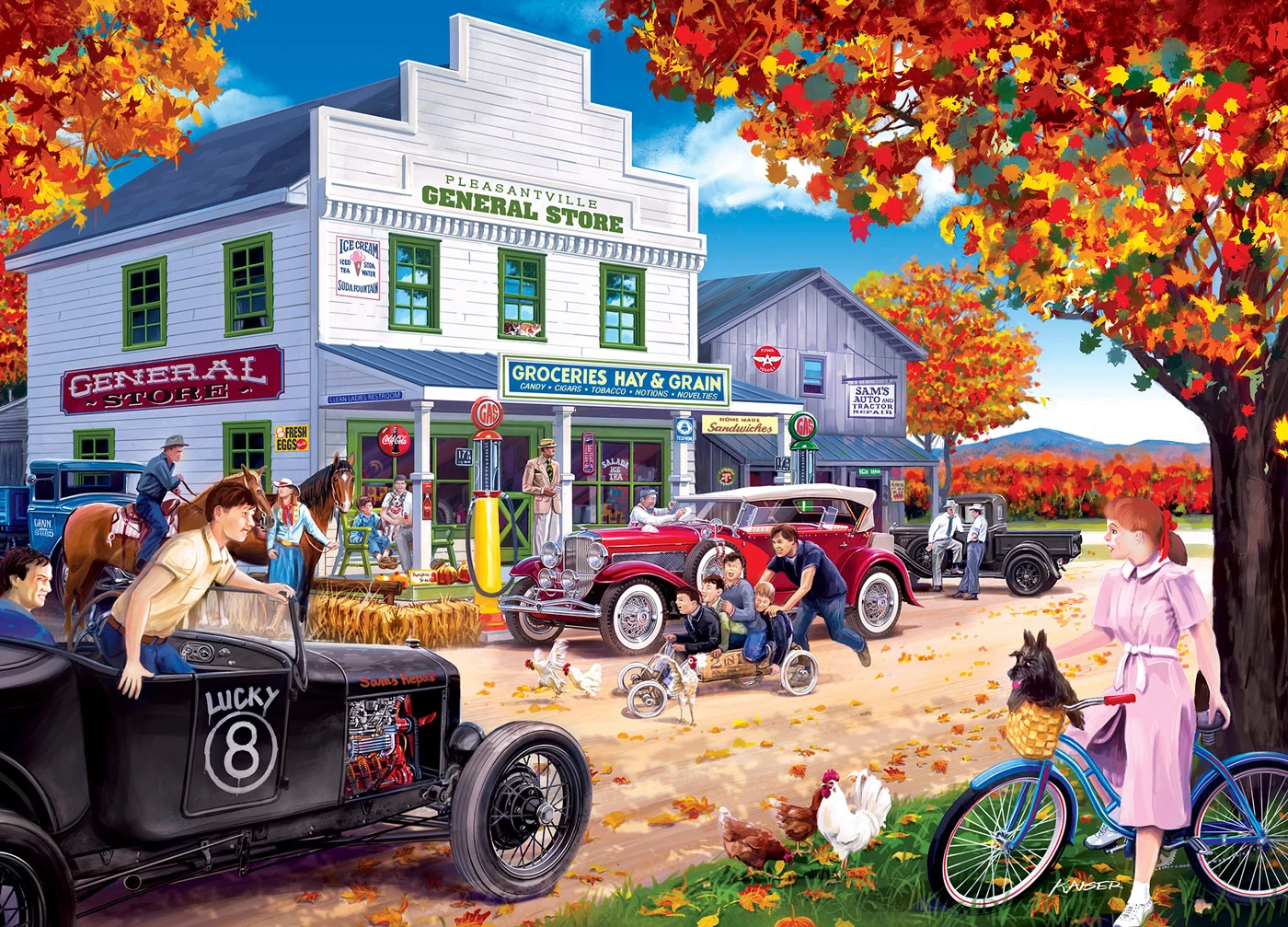 These MasterPieces 19.25″ x 26.75″ 1000pc featuring an autumn day at the general store with teens showing off their cool cars. With their timeless beauty, these puzzles are sure to offer you an afternoon of puzzling fun! To reduce their impact on our environment, the chipboard used in these puzzles is made of recycled material.