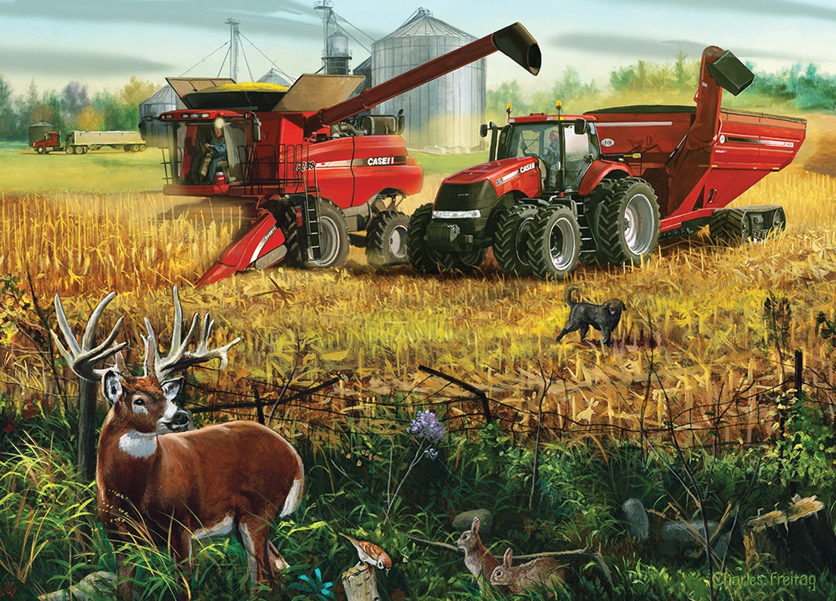 This MasterPieces Farmall 19.25″ x 26.75″ 1000pc Puzzle features the farm boys playing on the tree, while Dad rides out to the field. Farmall tractors have withstood the test of time. Over 5 million different models were sold around the world and some are still at work today. These tractors were light, nimble and easy to use. They were also fairly innovative, featuring matching implements for plowing, planting and harvesting. Today, the Farmall brand continues to represent uncompromising dedication to agriculture and the American farmer. To reduce its impact on our environment, the chipboard used in this puzzle is made of recycled material.