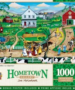 These MasterPieces 19.25″ x 26.75″ 1000pc Hometown Gallery Puzzles are painted by the talented folk artist, Joe Holodook, and they feature beautiful, vintage scenes that remind us all of simpler times. Β The roaming Peddler comes by with his wagon of wares. To reduce their impact on our environment, the chipboard used in these puzzles is made of recycled material. In the small towns and villages of Joe Holodookβs America you can sip the cider, sit by the cracker barrel, go sugaring and skating in the winter and enjoy life as it used to be, and perhaps ought to be. The artist has created hundreds of pieces of art for Β the traditional markets and galleries of the Hudson River Valley. Many of his works grace fine homes as well as major corporations, among them Ernst & Young and ITG Boston. Β He has also created restoration artwork for the Sacred Heart Church and for the St. Nicholas Ukrainian Catholic Church, both in his home town of Hudson, New York. 1000 Piece Puzzle Finished 19.25 inch x 26.75 inch Artwork by popular puzzle artist Linda Nelson Stocks Thick recycled puzzle board and random cut pieces ensure a tight interlocking fit and create a fun experience MasterPieces – An American Puzzle & Game Company. We stand behind our products and guarantee your satisfaction. Β