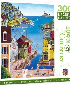 This MasterPieces 18″ x 24″ 300PC EZ Grip Town & Country Puzzle is the perfect way to sit back, relax, and enjoy the simple pleasures in life. The Town & Country collection features the work of the incredibly talented folk artist, Art Poulin. Considered one of America’s foremost folk artists, Art Poulin paints timeless canvases of inviting landscapes. On top of being a master folk artist, Art also served in the US Army for 27 years, and is a classical pianist. With a folksy village and bayfront view, and even an artist painting peacefully on the pier, this puzzle is sure to offer you an afternoon of puzzling fun! The EZ-Grip technology used to make this puzzle offers larger puzzle pieces that snap together perfectly, without compromising image quality. To reduce its impact on our environment, the chipboard used in this puzzle is made of recycled material.