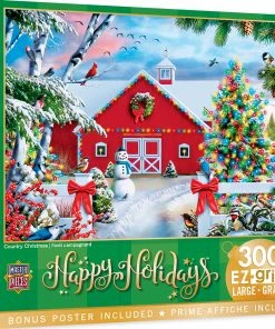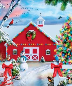 This MasterPieces 18″ x 24″ Memory Lane 300PC EZ Grip Puzzle depicts a festive Christmas Barn decorated with bright colorful lights and a festive snowman. It was painted by the talented Alan Giana, whose paintings of colorful paths, charming country hideaways, and tranquil coastal gateways are touching the hearts of people everywhere. His inspiring paintings now appear on hundreds of products that are sold around the world. Alan lives with his loving wife, Pamela, in the picturesque town of Simsbury, Connecticut. The EZ-Grip technology used to make this puzzle offers larger puzzle pieces that snap together perfectly, without compromising image quality. To reduce its impact on our environment, the chipboard used in this puzzle is made of recycled material.