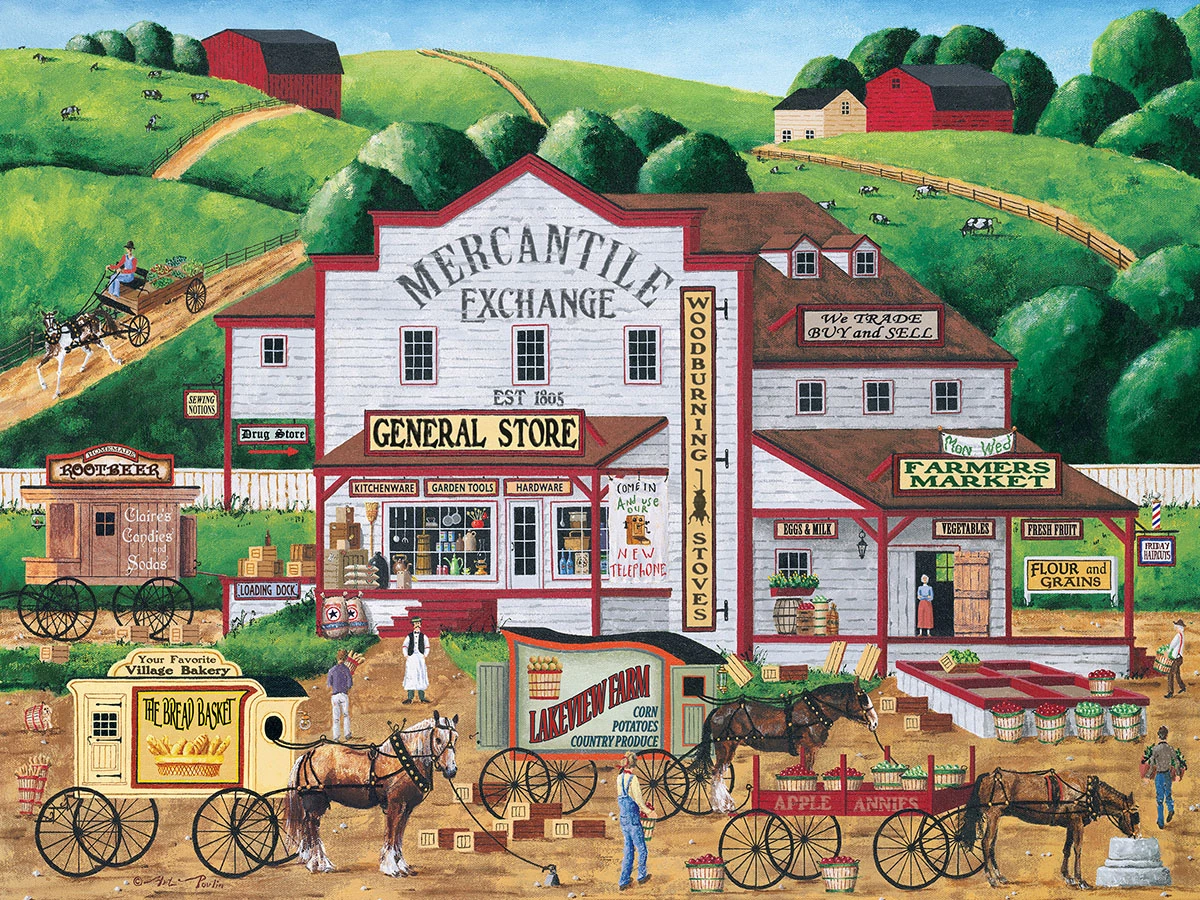This MasterPieces 18″ x 24″ 300PC EZ Grip Town & Country Puzzle is the perfect way to sit back, relax, and enjoy the simple pleasures in life. With featured art of the incredibly talented folk artist, Art Poulin. This Town & Country collection of Morning Deliveries Puzzle features a folksy village and country side shopping center. There are horses and carriages out front ready for a mornings run of deliveries for the day, this puzzle is sure to offer you an afternoon of puzzling fun! The EZ-Grip die-cut used to make this puzzle offers larger puzzle pieces for easier visual and grip that snap together perfectly, without compromising image quality. To reduce their impact on our environment, the chipboard used in these puzzles is made of recycled material.