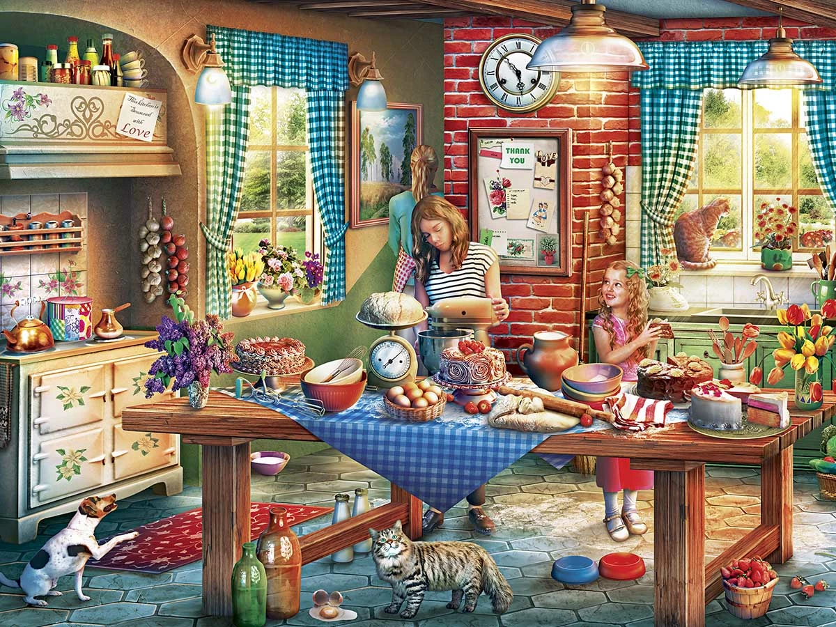 The kitchen is bustling in this 550 piece jigsaw puzzle from Masterpieces. Β Featuring a couple of avid bakers making some bread, this puzzle is perfect for any chef or food lover looking for a good time.