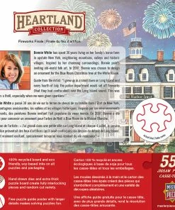 This MasterPieces 24″ x 18″ 550PC Heartland puzzle was created by the talented Bonnie White. Inspired by the charming scenery on her family’s farm in upstate New York, as well as neighboring mountains, valleys, and historic villages, Bonnie White creates beautiful landscapes of old-world folk art and culture. This puzzle is no exception, with a magnificent display of fireworks lighting up the night sky of a historic, seaside town. For more Bonnie White folk art, visit her website at www.bonniewhitefolkart.com. To reduce its impact on our environment, the chipboard used in this puzzle is made of recycled material.
