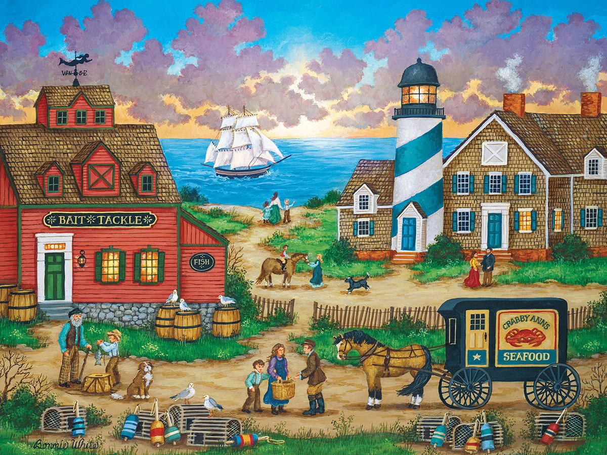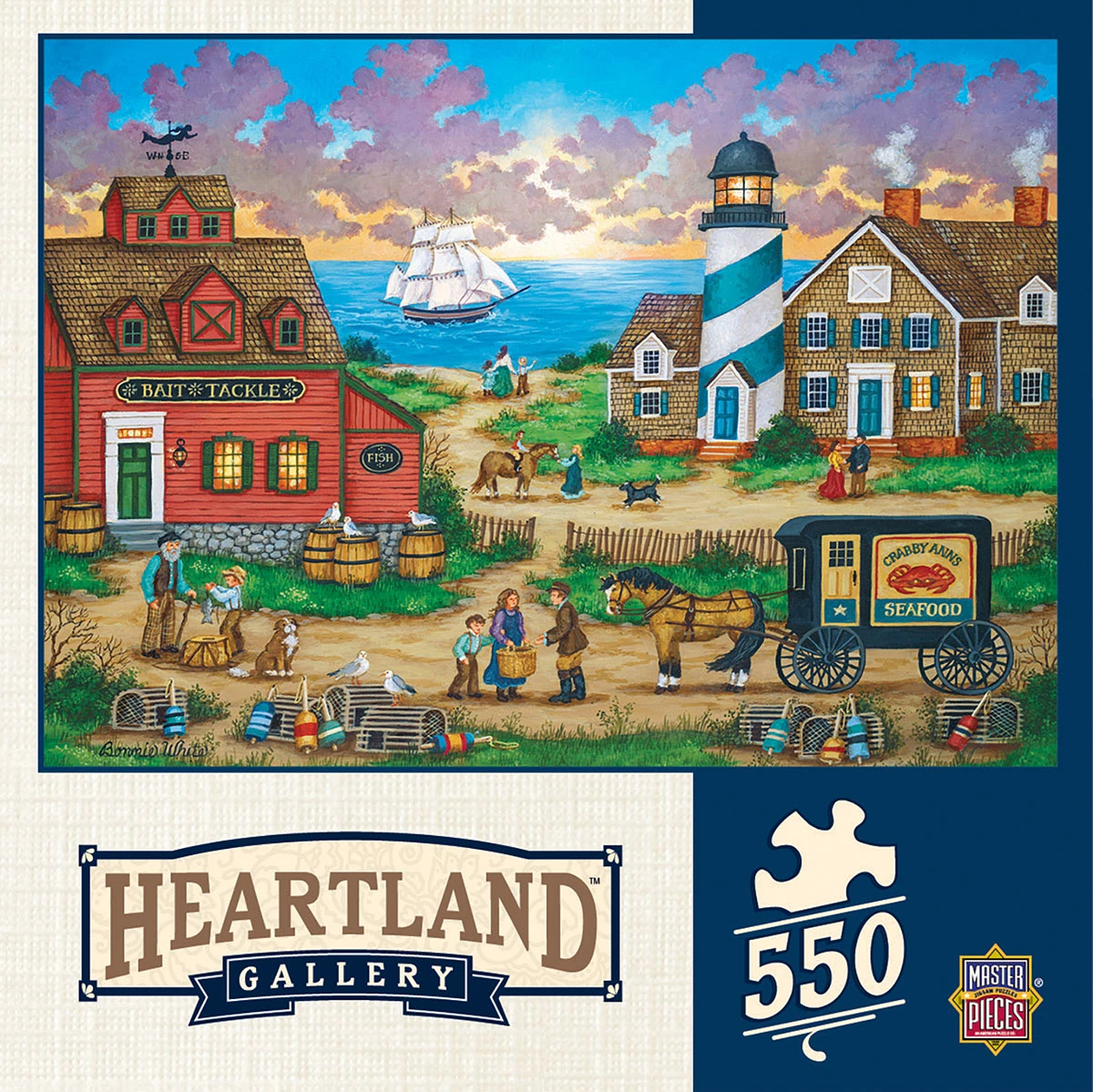 These MasterPieces 24″ x 18″ 550PC Heartland puzzles are created by the talented Bonnie White. Inspired by the charming scenery on her family’s farm in upstate New York, as well as neighboring mountains, valleys, and historic villages, Bonnie White creates beautiful landscapes of old-world folk art and culture. The Heartland line is no exception, with beautiful, detailed scenes ranging from quiet, seaside villages to villages bustling with activity.