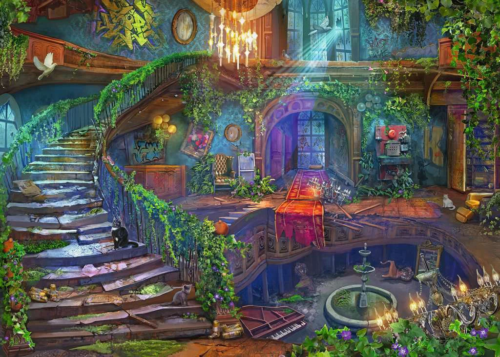 Watch your step β this once elegant establishment is now a decrepit dump! The lobby may have been the lap of luxury years ago, but now itβs tagged with graffiti and littered with cans. Climb the curving stairs to nowhere; the upper floorβs collapsed and dumped the piano in the patio below! At least the hotel is housing some stray cats and a beautiful white dove, adding some life amid the growing jungle of plants. Part of our Abandoned Series, enjoy eerie pleasure piecing this puzzle together!