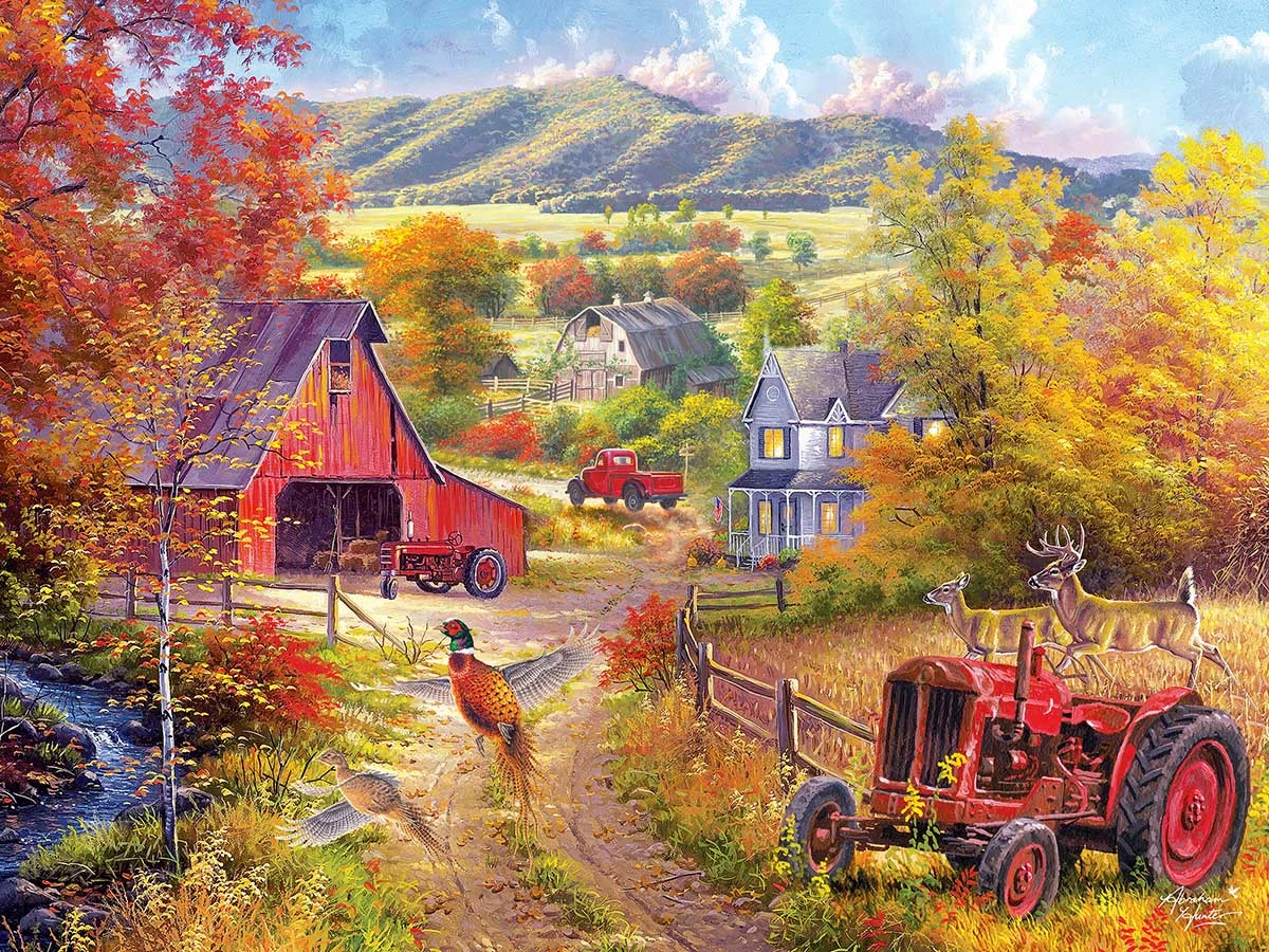 This 300 piece puzzle by Abraham Hunter is a beautiful look at an old country road, with a quaint house and farm ahead.ย ย