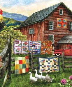 Tom Woodโs A Little Bit of Heaven brings you right into a quilt sale in the country. The brightly colored quilts, rustic barn, and adorable animals will keep you busy while putting together this 1000 piece puzzle from SunsOut. Completed puzzle measures 20โ x 27โ.