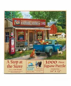 Take a drive to the general store in SunsOutโs A Stop at the Store. This 1000 piece puzzle featuring artwork from Tom Wood will have you feeling nostalgic as you piece together a small town general store. With a bright blue truck, vibrant barn, and fun window signs, there will be something for everyone to work on in this puzzle! The completed puzzle will measure 20โ x 27โ.ย