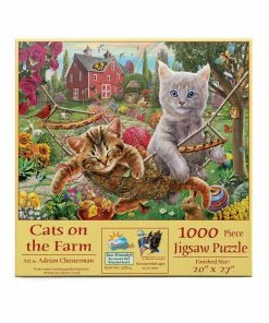 Two kittens are enjoying a relaxing day in the hammock. Piece together a beautiful farm scene with plenty of hidden animals to find. A gorgeous rainbow finishes off the scene. This Adrian Chesterman puzzle from SunsOut will measure 20โ x 27โ when complete.ย