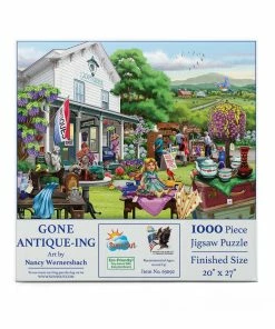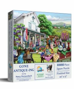 Pick out a treasure at the yard sale in βGone Antique-ingβ from SunsOut. Artist Nancy Wernersbach has hidden all sorts of fun items in this puzzle from pottery to toys to furniture. What item would you most like to buy? The completed 1000 piece puzzle will measure 27β x 20β. Β