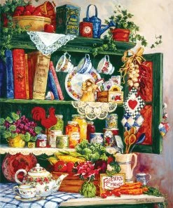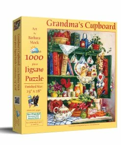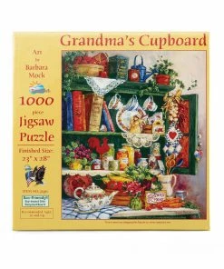 Take a peek in the cabinet while piecing together βGrandmaβs Cupboardβ from SunsOut. Tea sets, cook books, canned goods, and seed packets are just some of the items tucked into the full cupboard. This puzzle was released in 2016.