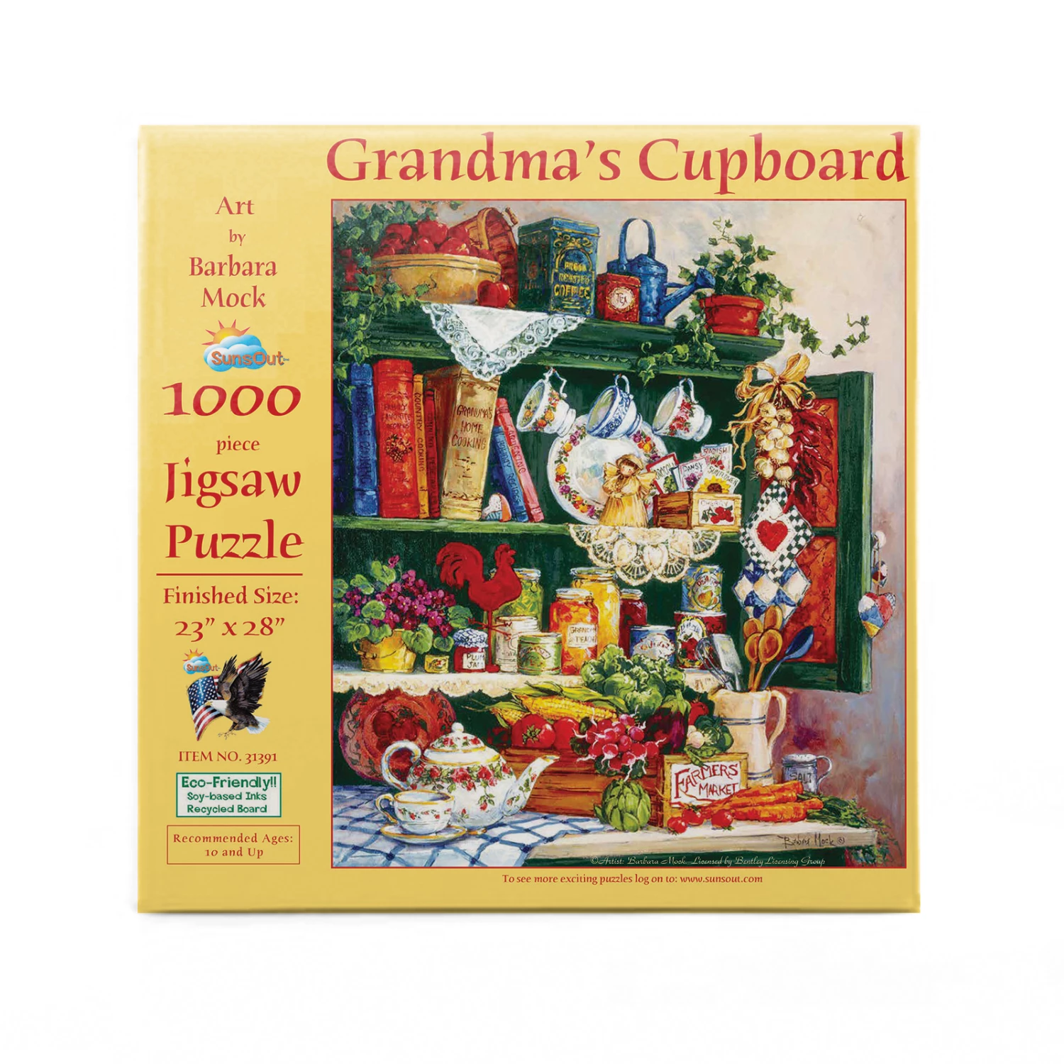 SunsOut puzzles are 100% made in the USA with eco-friendly soy-based inks on recycled boards. SunsOut is not sold in mass-market stores.