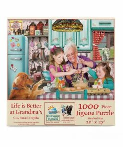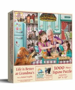βLife is Better at Grandmaβsβ features the artwork of Rafael Trujillo. This heartwarming scene has tons of bright colors, patterns, and details to piece together. The completed 1000 piece SunsOut puzzle will measure 27β x 20β.Β
