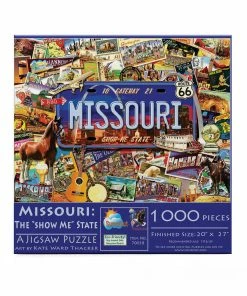 Piece together all things Missouri in Missouri: The “Show Me” State by SunsOut. This 1000 piece collage puzzle features images depicting famous landmarks, scenes, and people in Missouriβs history. The artwork from Kate Ward Thacker is detailed and vibrant and will keep you entertained for hours. The completed puzzle will measure 27β x 20β