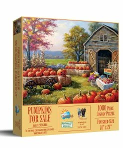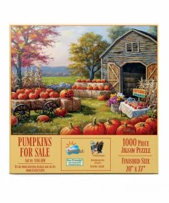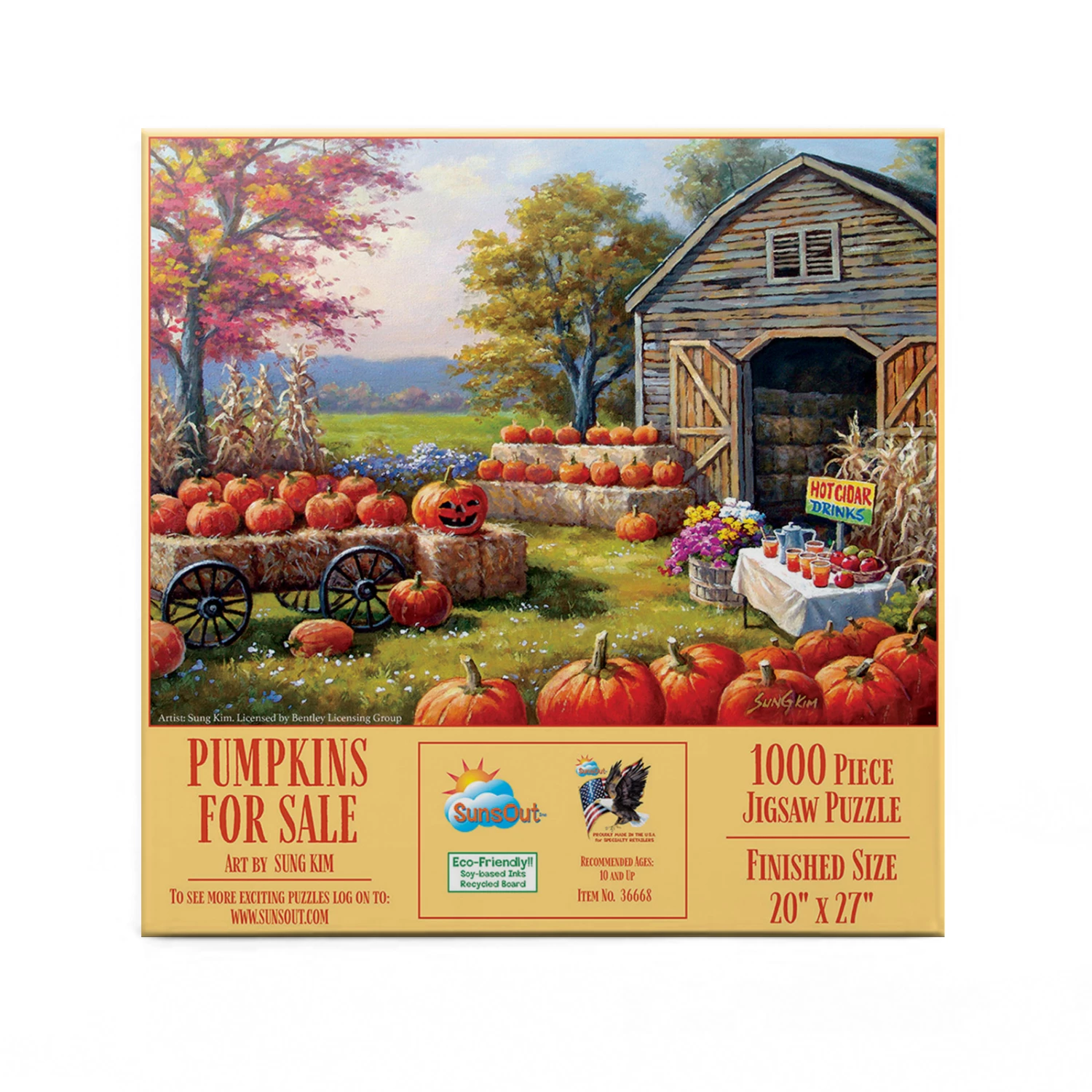 Grab a glass of apple cider and pick out your favorite pumpkin in βPumpkins for Saleβ by SunsOut. Artist Sung Kim has painted tons of pumpkins, corn stalks, hay bales, and flowers in this fun fall image. The completed 1000 piece puzzle will measure 27β x 20β.Β