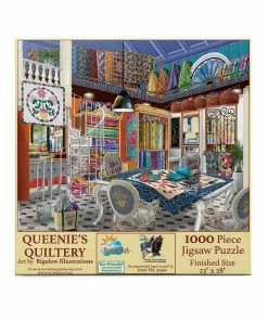 Are you ready for a fun puzzle? βQueenieβs Quilteryβ from SunsOut is an image jam-packed with quilting fun! From bolts of fabric to completed quilts, there is so much to piece together in this colorful puzzle. This would be a fun puzzle to do with family as you can search and try to find pieces with the same pattern or color to put together. The completed 1000 piece puzzle will measure 28β x 23β.