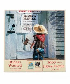 Piece together a sweet scene of a little boy wanting to become a cowboy in βRiders Wantedβ from SunsOut. This 1000 piece puzzle features the challenging artwork of Don Crook. The completed 1000 piece jigsaw puzzle will measure 23β x 28β.Β