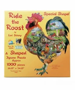 A perfect day on the farm is depicted in Rule the Roost. Featuring the vibrant artwork of Lori Schory, this 1000 piece shaped puzzle will keep you smiling as you piece together all the fun farm animals. This SunsOut puzzle will measure 26.25” x 34.25” when complete.
