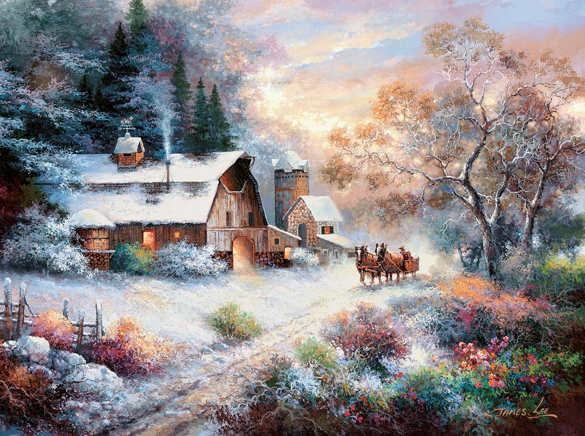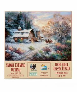 Step into a whimsical winter night in βSnowy Evening Outingβ from SunsOut. This puzzle features the beautiful artwork of James Lee. His landscapes are fun and a little challenging to piece together. The completed 1000 piece puzzle will measure 27β x 20β.