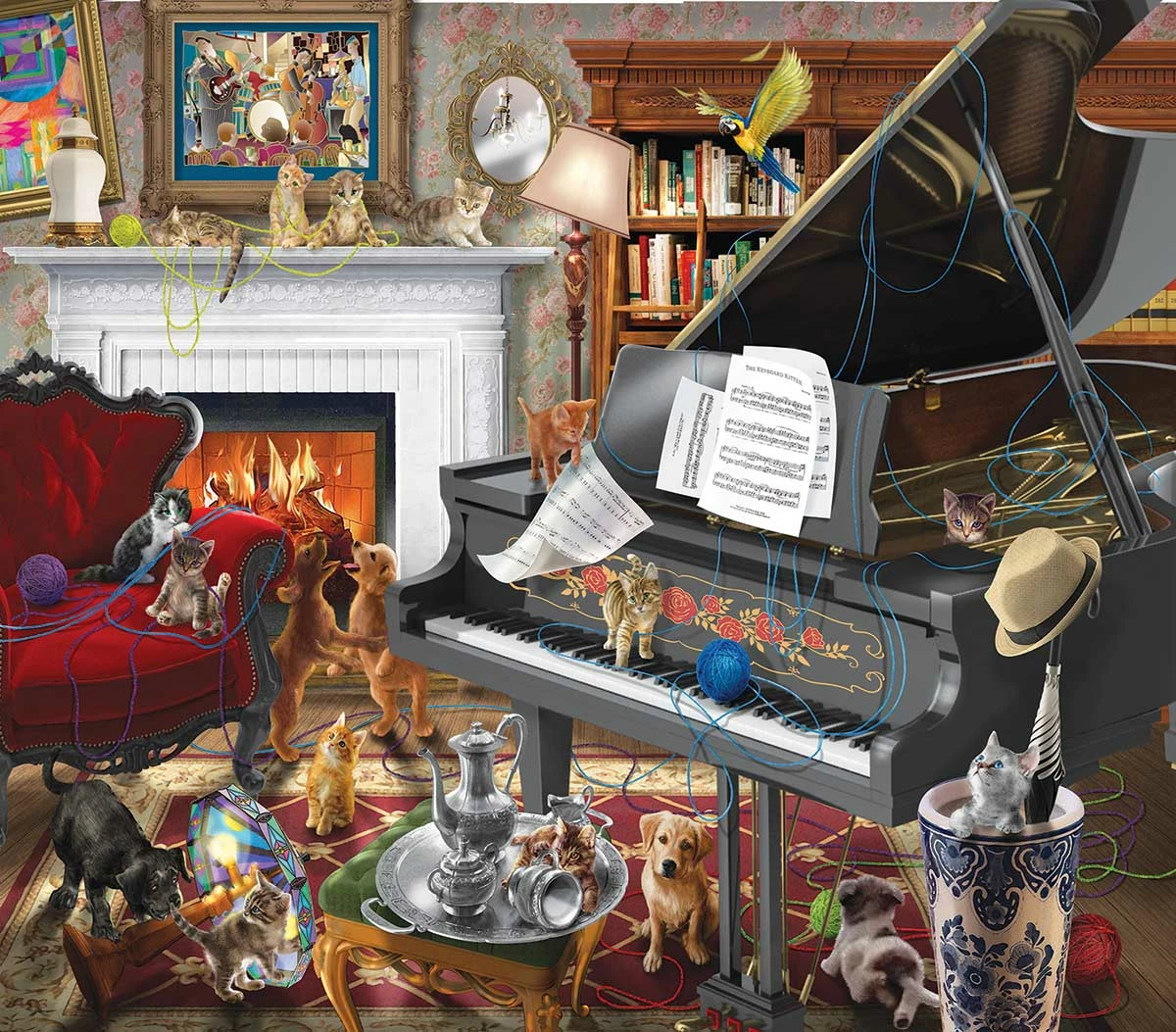 Uh Oh! Some curious kittens have gotten into the knitting supplies and spread yarn all over the room! Can you untangle the mess they made? This 300 piece puzzle from SunsOut features the artwork of Bigelow Illustrations and will measure 21” x 24” when complete.