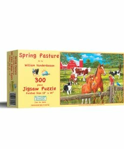 These barnyard friends are enjoying a day on the farm! A dog, cows, horses, and birds are all included in this fun image from William Vanderdasson. The completed 300 piece puzzle will measure 24โ x 18โ when completed.