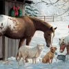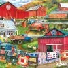 A group of barnyard animals are enjoying a snowy day on the farm. From chickens to goats to horses to cows, this puzzle has all your favorite barnyard animals! Artist Lori Schory has created a perfect winter wonderland image that will get you in the holiday spirit. The completed 300 piece puzzle will measure 24″ x 18″.