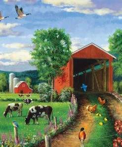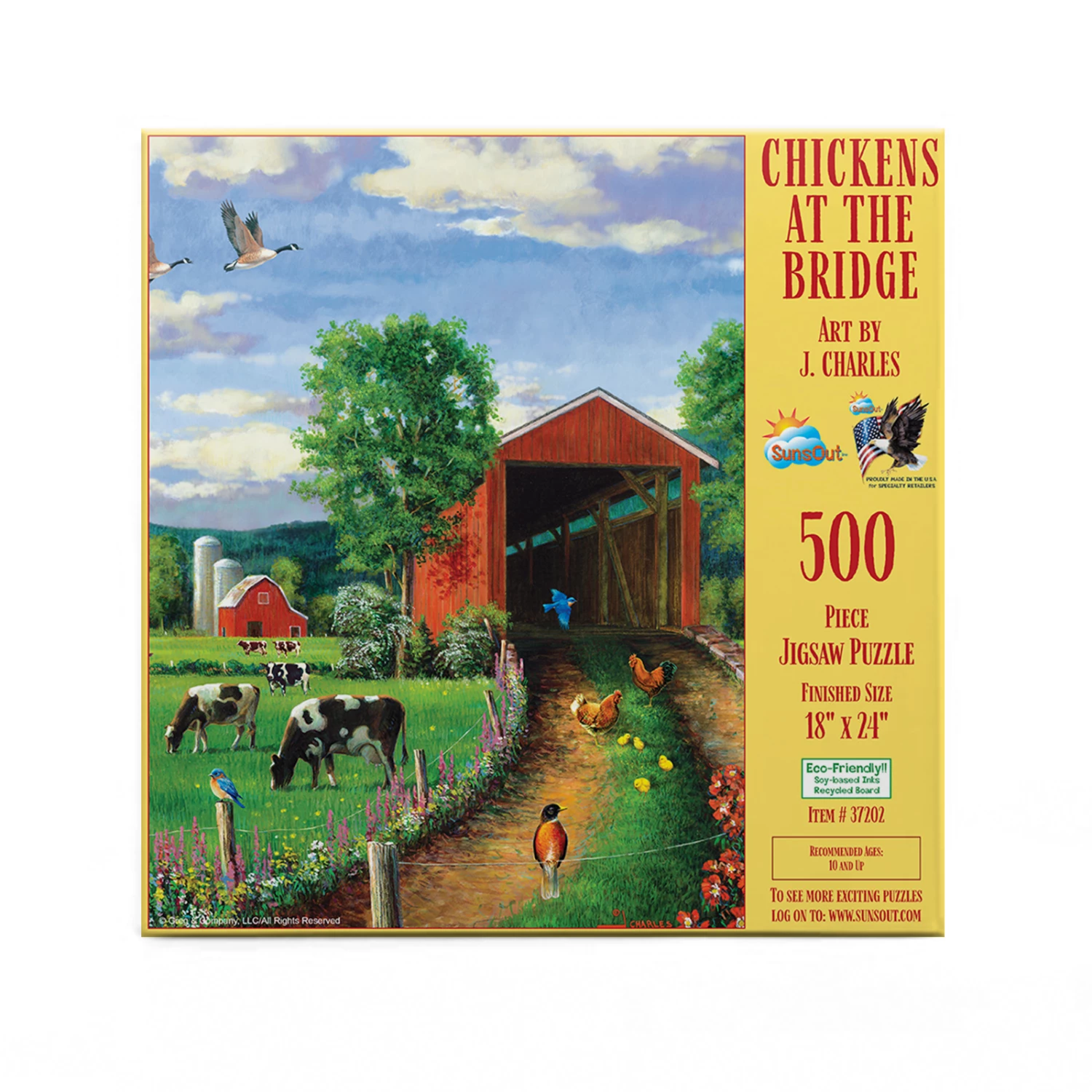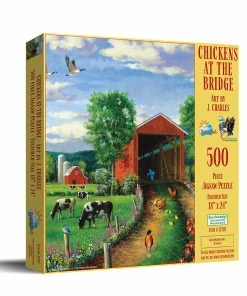 In this 500 piece jigsaw puzzle from Sunsout, the chickens have flown the coop, but not to worry, they’re only at this rustic covered bridge! Β Enjoy this slice of farm life in puzzle form. This puzzle will measure 18″ x 24″ when complete.