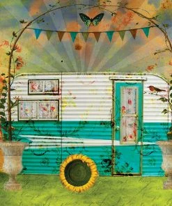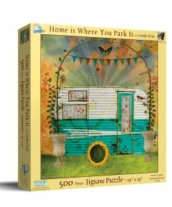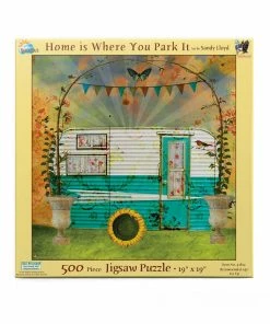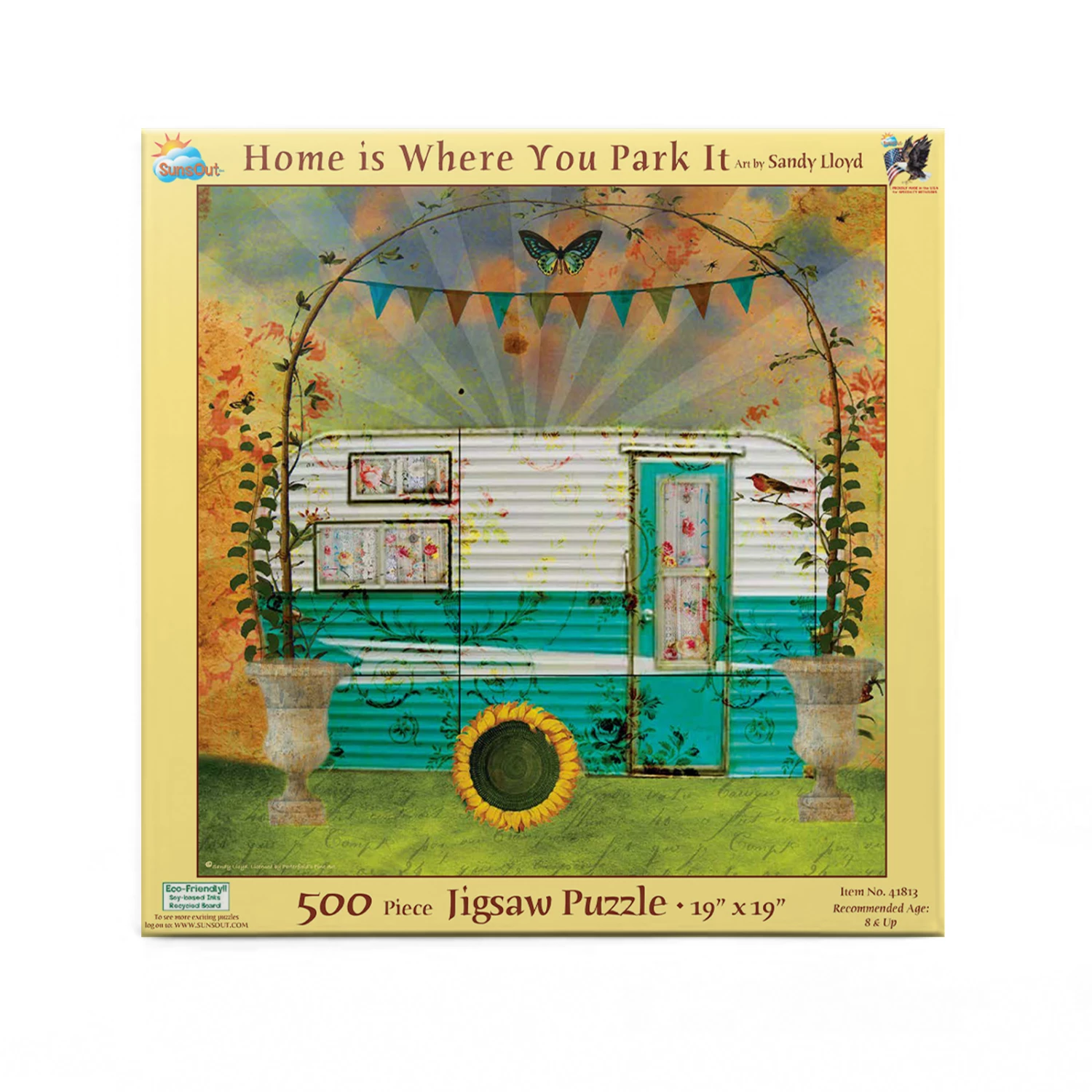 This fun puzzle from SunsOut features a brightly colored camper with floral curtains. Artist Sandy Lloyd crafted a fun image that is perfect for anyone that likes to get out on the road. The completed 500 piece puzzle will measure 19โ x 19โ and would be great wall art in your own camper or trailer!