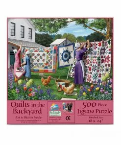 Three women hang up beautiful star patterned quilts while chickens peck in the garden in this fun puzzle from SunsOut. The bright and colorful artwork of Sharon Steele will be fun to piece together no matter what your puzzle skill level is. The 500 piece puzzle will measure 24โ x 18โ when complete.
