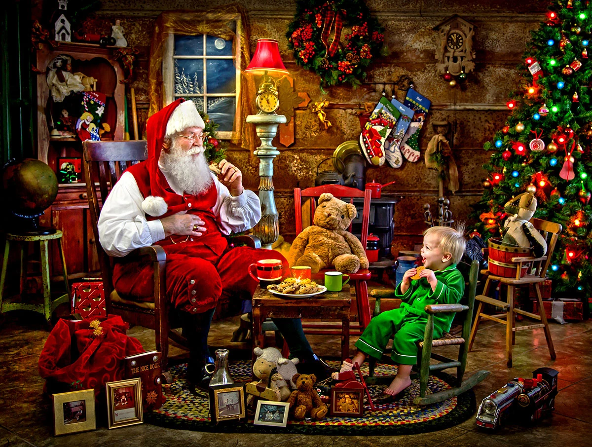 Santa’s Visit Jigsaw Puzzle by Vermont Christmas Company is perfect for the holidays with the family!