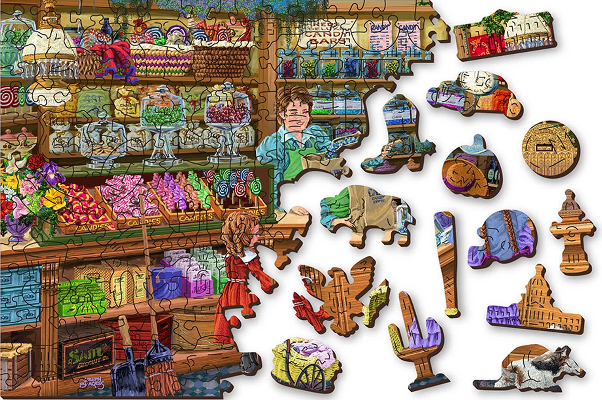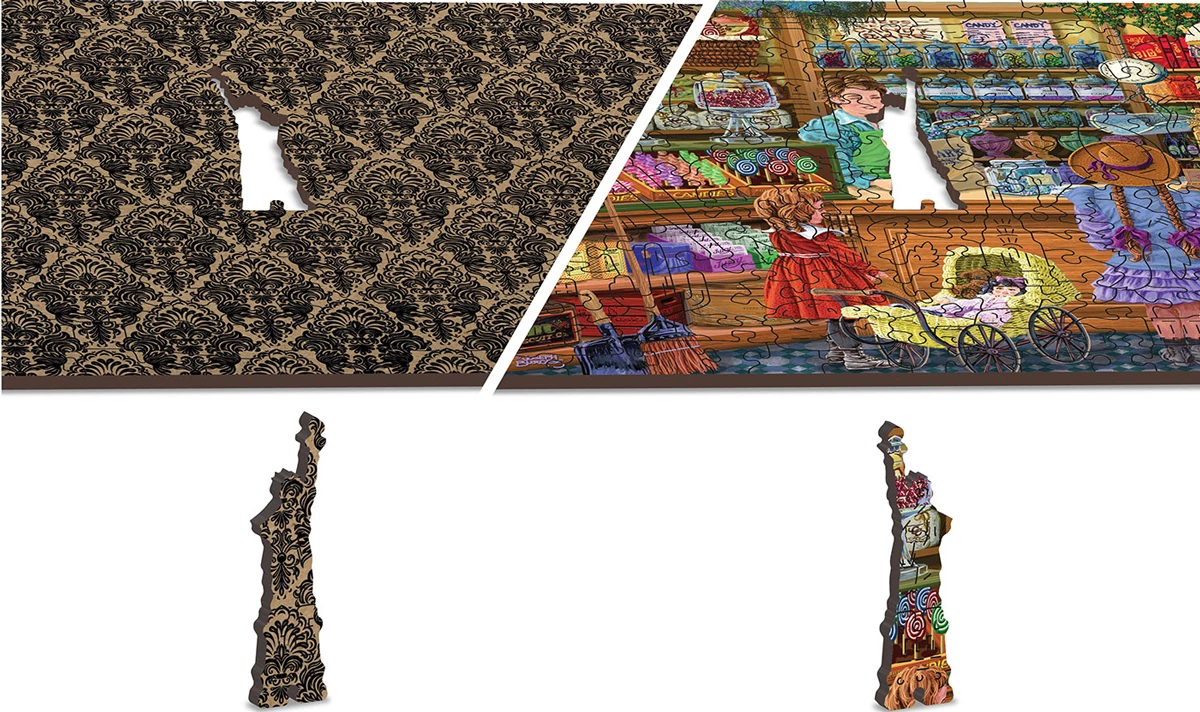 Wooden City Candy Adventures puzzles offer a challenging and unique build, a fun playful experience, and a decorative showpiece for years to come.